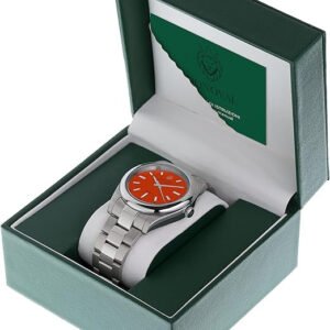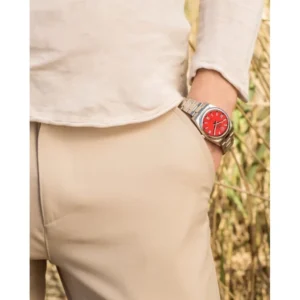 The watch is powered by an automatic Miyota 8002 movement – it does not require a battery change, it screws on while wearing the watch on the wrist.