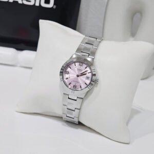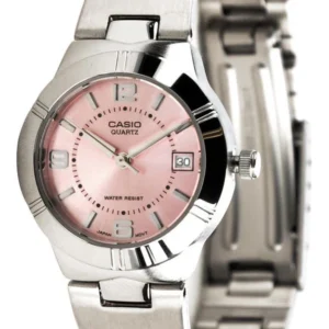 CASIO LTP-1241D-4A is an elegant women’s watch that combines classic design with modern technological solutions. The watch features a steel envelope with a diameter of 25 mm, which gives it a subtle yet distinctive look. The envelope is made of high-quality stainless steel, which ensures durability and resistance to damage. The watch has a pink dial, which features silver-colored indexes and hands, making the time reading convenient and clear. The dial also features a date pad, which displays the current day of the month. Thanks to the use of mineral glass, the dial is scratch-resistant, which ensures the long-lasting aesthetics of the watch. The bracelet, also made of stainless steel, has an elegant silver color that blends perfectly with the rest of the design. It is comfortable and easy to adjust to the wrist, making the watch comfortable for everyday wear. The CASIO LTP-1241D-4A is a watch that combines functionality with aesthetics, offering a precise quartz movement and an elegant design. It is an excellent choice for those looking for a watch that will match both everyday and more formal styles.