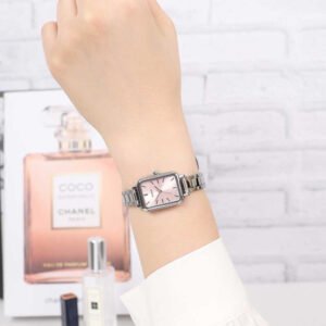 The CASIO LTP-V009D-4E women’s watch combines subtle elegance, lightness and practicality, making this model an ideal choice for women who appreciate style, convenience and versatility. Its rectangular steel envelope in a silver tone exudes a classic design, while looking extremely modern thanks to its delicate polished details. The watch’s dial, which is kept in a subdued pink pearl color scheme, is decorated with silver indexes and slender hands that ensure excellent time legibility.