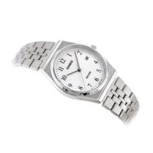 CASIO MTP-B145D-7B is a timepiece that combines ruggedness and sophisticated style. With a water resistance of up to 50M, you can confidently wear it every day without worrying about splashes or brief contact with water – whether you’re at the office, in a meeting or on a weekend getaway. The silver stainless steel bracelet perfectly matches the envelope, creating a coherent and harmonious whole, which attracts attention with its elegance and simplicity. It not only adds a noble touch to the watch, but also guarantees comfortable wearing for long hours, thanks to a precisely designed clasp that fits perfectly on the wrist.