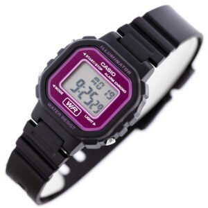 The watch strap, made of soft and flexible plastic, is not only comfortable, but also easy to adjust, allowing you to perfectly fit the watch to a small wrist. Its black color scheme blends harmoniously with the envelope, creating a consistent and aesthetically pleasing look. CASIO LA-20WH-4ADF is more than a watch – it is the first step into the world of adulthood, which teaches responsibility and punctuality, but at the same time remains a cheerful and colorful addition to children’s styling. It’s the perfect gift for a child who wants to feel special and independent while carrying a reliable timepiece from the well-known and respected CASIO brand.