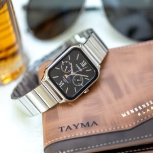 The watch’s envelope is made of stainless steel, which guarantees durability and resistance to mechanical damage. The black dial with date and moon phases adds subtle elegance to the watch. The classic stainless steel bracelet with a push-button clasp ensures comfortable wearing and adjustment to different wrist sizes.