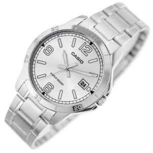 Casio MTP-V004D-7B2 men’s watch is an elegant choice for men who appreciate timeless style and reliability. Its bracelet and envelope are made of high-quality silver-colored stainless steel, ensuring both durability and an elegant look. The watch’s silver dial complements the classic design, giving it a subtle yet distinctive aesthetic.