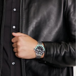 The bracelet and the envelope are made of high-quality stainless steel with a silver-colored coating. The Emporio Armani AR11598 – Diver GMT watch has a water resistance rating of 10 ATM, which means that it is resistant to contact with water – you can safely swim in it.