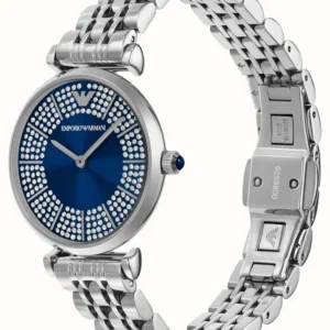 Women’s Emporio Armani AR11627 watch from the Gianni T-Bar series is an elegant women’s watch perfect for any occasion. The envelope and bracelet are made of stainless steel, which guarantees long-lasting resistance to damage. The model features an accurate battery-powered quartz movement. The dark blue dial decorated with zircons is protected by scratch-resistant mineral glass.