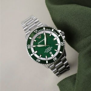 Męski zegarek Emporio Armani AR60080 Sea Explorer AUTOMATIC to elegancki męski zegarek, który został przygotowany z myślą o wszystkich miłośnikach mody i najnowszych stylistycznych trendów. Bransoleta oraz koperta wykonane zostały ze stali szlachetnej. Ten model zegarka czaruje unikatowym, bardzo charakterystycznym designem ponieważ każdy z elementów jest tu przemyślany i ściśle związany z aspektem funkcjonalnym. Jeśli szukasz zegarka na długie lata, to wybór tego modelu o niebieskiej tarczy będzie strzałem w dziesiątkę.