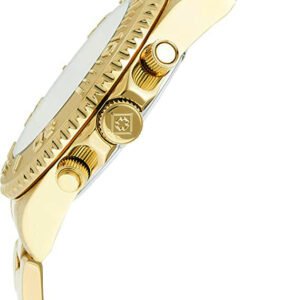 The champagne-colored dial features luminescent hands and indexes. The watch’s all-steel envelope and bracelet are gold-colored.
