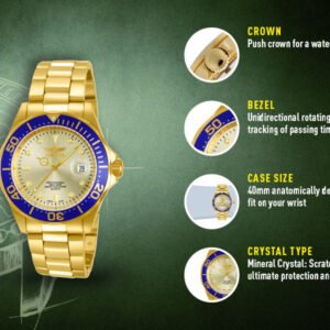 INVICTA 14214 men’s watch is a classic diver’s watch with water resistance up to 200m, with quartz movement SEIKO PC32A. An understated timepiece for any occasion – for everyday wear as for special occasions.
