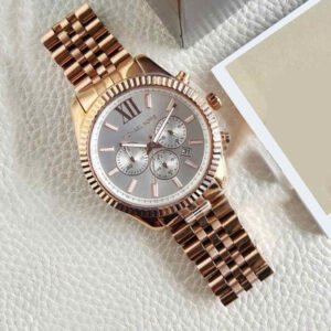 Model Michael Kors MK8313 z serii Lexington to elegancki zegarek unisex na bransolecie w kolorze złotym wykonanej ze stali szlachetnej. Oznaczenia godzinowe w postaci cyfr rzymskich oraz indeksów świetnie komponują się z tarczą i wskazówkami. Wyposażony jest w precyzyjny mechanizm kwarcowy, dzięki któremu zegarek dokładanie pokazuje aktualną godzinę. Dostępne funkcje to chronograf, datownik dnia miesiąca oraz 24-godzinne wskazanie czasu. Tarczę ochrania mineralne, odporne na zarysowania szkiełko.