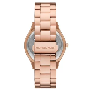 Michael Kors MK4733 Slim Runway watch is a very glamorous and feminine accessory for both sporty and casual outfits. The dial of the watch is decorated with cubic zirconia with a large MK logo – all kept in rose gold color scheme. Envelope and bracelet made of stainless steel in rose gold color. Mineral glass used, which guarantees protection against cracks. The watch has a waterproof rating of 50 meters, which means that it is resistant to minor splashes.