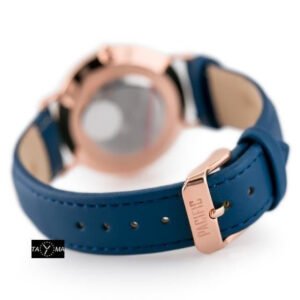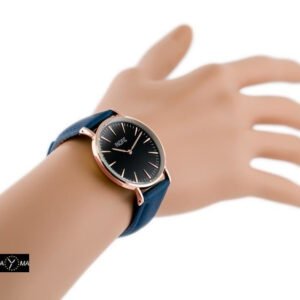 Color scheme: strap in navy blue, envelope and index in rosegold, dial in black