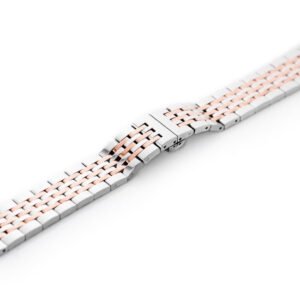 Steel bracelet with butterfly clasp for high quality watch in silver and rose gold color.