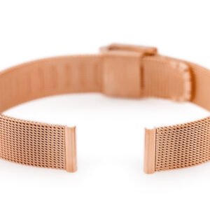 Steel ‘mesh’ type watch bracelet of high quality in rosegold color. PVD-coated.