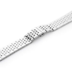 Steel bracelet with butterfly clasp for high quality watch in silver color.