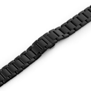 Steel bracelet with butterfly clasp for high quality watch in black color.
