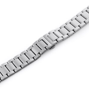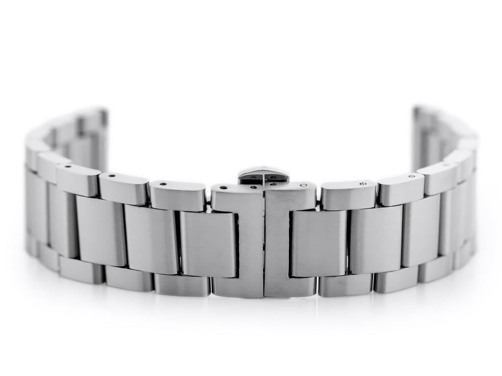 Steel bracelet with butterfly clasp for high quality watch in silver color.