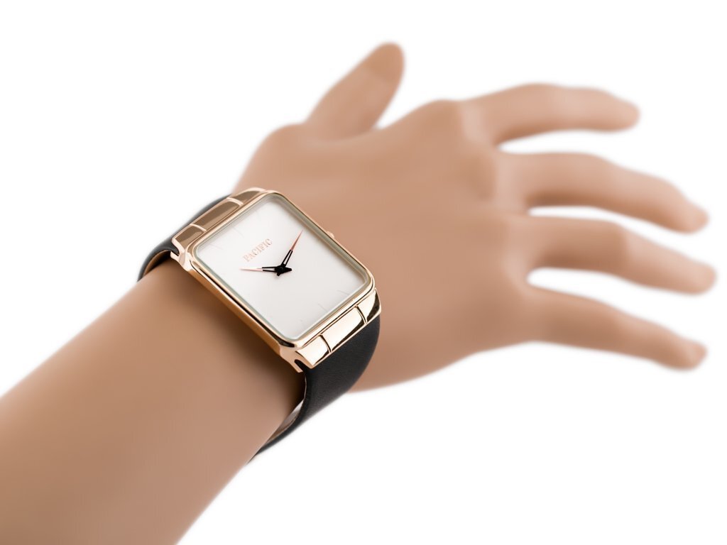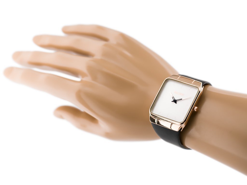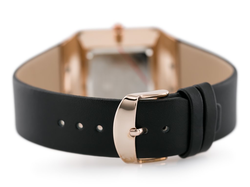Color scheme: strap in black, envelope in rosegold, dial in silver
