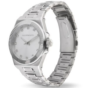 RoccoBarocco RB.5041L-01M women’s watch is designed for women who appreciate elegant accessories. RoccoBarocco RB.5041L-01M watch in silver color decorated with zircons on a silver dial. The RoccoBarocco RB.5041L-01M watch is equipped with a precise quartz movement.
