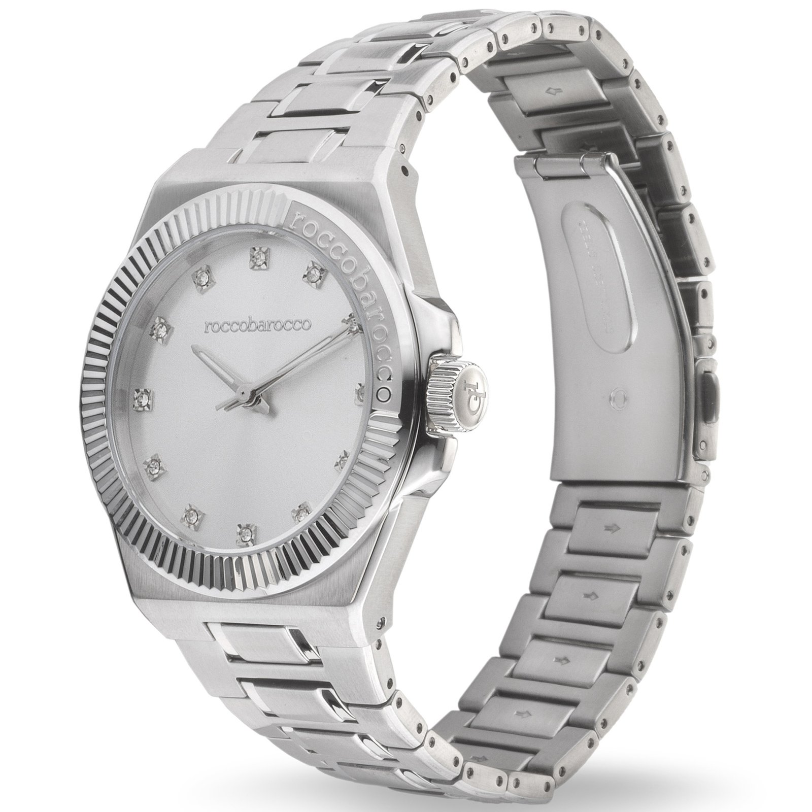 RoccoBarocco women’s watch is not only a practical tool for measuring time, but also an elegant accessory that highlights the style and personality of the woman wearing it. This watch combines classic design with subtle designer details, creating a striking and unique product.