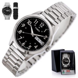 Men’s TIMEX South Street Sport TWG027900 watch fits perfectly for everyday styling, as well as for more formal occasions. The black and legible dial features a date display. This model has a silver bracelet and a silver envelope made of high-quality stainless steel – additionally, a black leather strap is included. The water resistance class of the watch is WR30. INDIGLO dial illumination – A special patent for illuminating the dial. When the crown or function button is pressed, the dial of the watch will be illuminated from underneath.