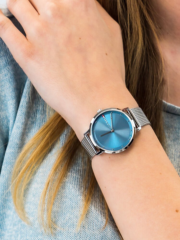 Tommy Hilfiger 1782149 PIPPA watch is an elegant women’s timepiece powered by a reliable quartz movement. The envelope and bracelet are made of silver-colored stainless steel, which guarantees its long-lasting resistance to damage. The whole is complemented by a delicate and elegant dial in blue.The water resistance class of the timepiece is WR30, which guarantees the watertightness of the watch in case of minor splashes.