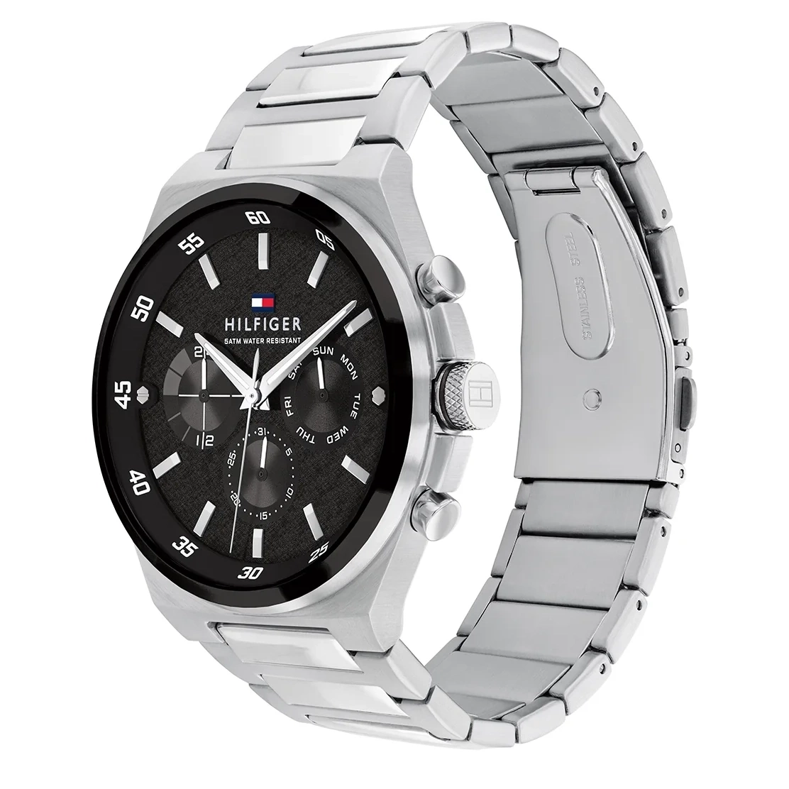 TOMMY HILFIGER DEXTER 1792087 men’s watch is a modern and elegant model for everyday wear. The envelope and bracelet made of high-grade 316L stainless steel, corrosion-resistant and hypoallergenic in silver. On the classic black dial, with sunray cut, there are sub-dials indicating: day of the month, day of the week and 24-hour time. The whole thing is protected by mineral glass. For timekeeping in the Tommy Hilfiger DEXTER 1792087 watch is responsible for the quartz mechanism, for which the energy that powers it comes from a battery. The DEXTER 1792087 model has a water resistance of 5ATM, which makes it slightly resistant to water. The whole thing has been refined to the smallest detail and designed in accordance with the current fashion trends, getting a classic yet elegant watch.