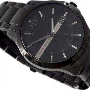 Zegarek męski Armani Exchange AX2104 to elegancki i nowoczesny model, który doskonale dopełni męską garderobę. Klasyczna czarna kolorystyka sprawia, że zegarek pasuje zarówno do codziennych, jak i bardziej formalnych stylizacji. Koperta o szerokości 46 mm, wykonana z wysokiej jakości stali szlachetnej, jest połączona z czarną stalową bransoletą, co zapewnia trwałość oraz wygodę noszenia. Czarna tarcza z efektem sunray posiada subtelne srebrne indeksy, co dodaje zegarkowi eleganckiego akcentu. Zegarek działa na precyzyjnym mechanizmie kwarcowym, a mineralne szkiełko chroni tarczę przed zarysowaniami. Wodoszczelność do 50 metrów sprawia, że jest odporny na zachlapania i codzienny kontakt z wodą.