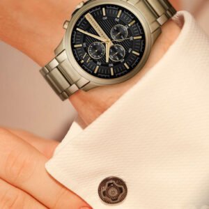 Zegarek męski Armani Exchange AX2137 to nowoczesny i elegancki model, który doskonale uzupełni męską garderobę. Jego klasyczna złota kolorystyka sprawia, że zegarek będzie pasować do każdej stylizacji, zarówno casualowej, jak i bardziej formalnej. Koperta z wysokiej jakości stali szlachetnej o szerokości 46 mm została połączona ze złotą bransoletą, która gwarantuje wygodę i trwałość. Precyzyjny mechanizm kwarcowy zapewnia niezawodność, a mineralne szkło chroni tarczę przed zarysowaniami. Zegarek jest odporny na wodę do 50 metrów, co sprawia, że jest odporny na zachlapania i kontakt z wodą w codziennym użytkowaniu.