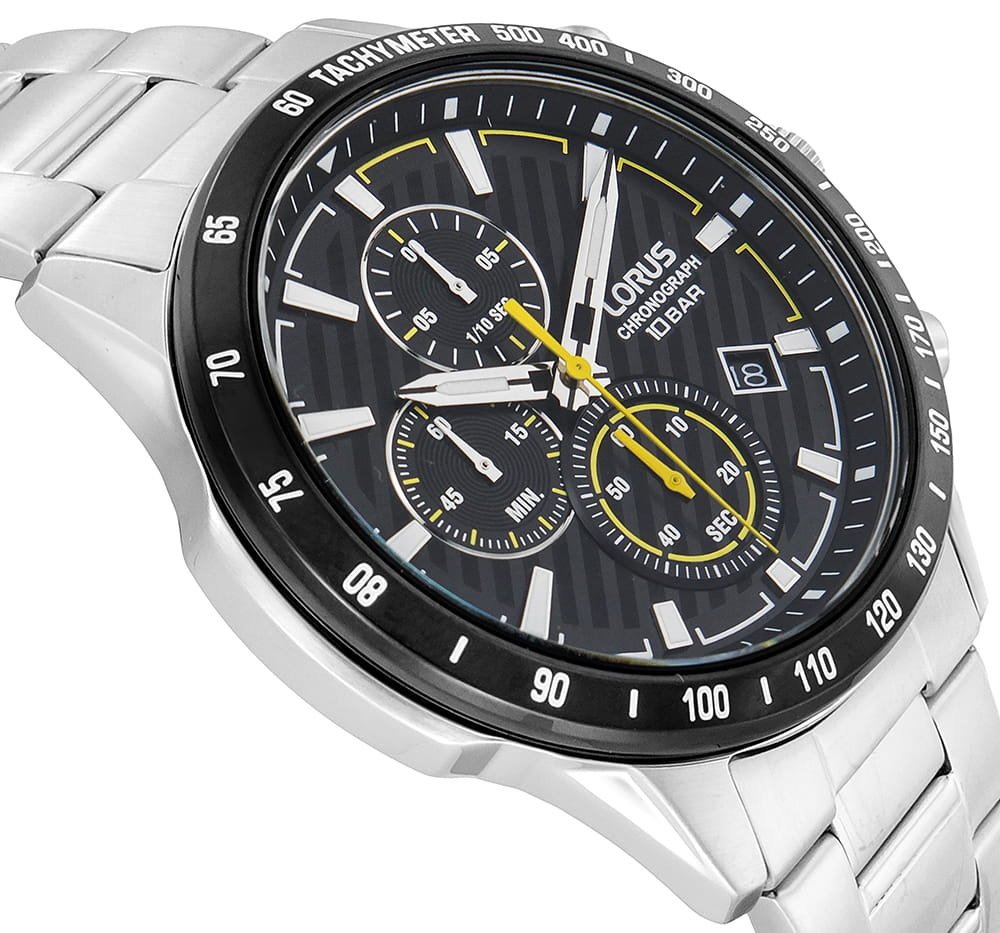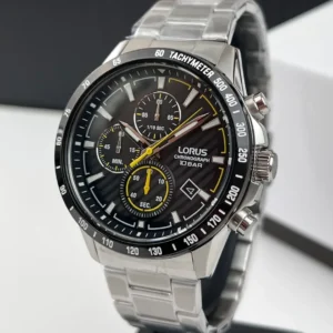 The Lorus RM397hX9 men’s watch is a combination of style, chronograph functions and unique design. Its silver color gives it a luxurious look, while the graphite dial adds a sensual contrast to the watch. The use of chronograph functions, especially the Split-Time function, makes this watch not only an elegant accent, but also a practical tool for measuring time accurately in various situations.